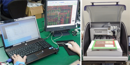 基板設計、回路設計を行い、社内にある基板加工機を使って試作します。 -