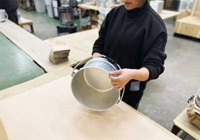 製品は、プレス加工・スピニング加工・アルマイト加工・組上げ加工・出荷といくつもの工程を経て完成します。どのセクションも自分の工程に責任と誇りを持ち次につなぐことを意識しながら一つひとつ丁寧に仕上げています。
