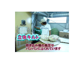 羽毛を吹き込み機で入れることにより、風圧でパンパンに膨れます。 -