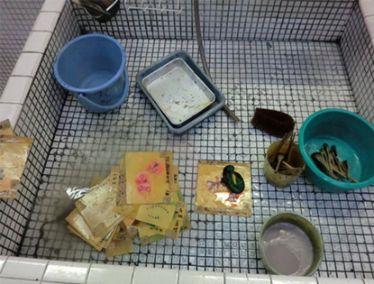道具や型紙の水洗い・片付けも仕事の一部です。