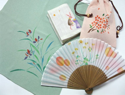 伝統の染色技術や設備などを活用して、オリジナル和雑貨やバッグなどのプロデュース、制作を行なっています。
