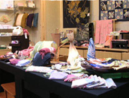 体験工房に併設しているショップでは、オリジナルの和雑貨・バッグなど、また京都らしいお土産の布製品などを扱っています。