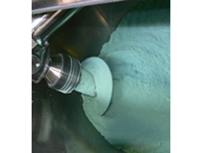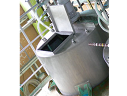 最大1000kgの粉体をスクリューを使い短時間に均一に混ぜることが可能です。粉体の取り出しは下部より行います。