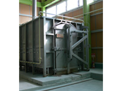左右各10基のバーナーで焼成処理を行います。焼成中の温度管理はプログラムにより管理され安定した自動運転が可能です。