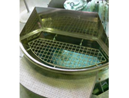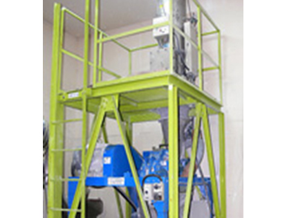 ホースを通じて空気輸送された塊が機械内に投入され粉砕を行います。粉砕後は下部に設置されたタンクに送り込まれます。