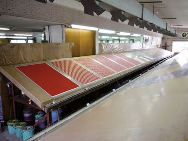 1色目が擦り終わると、2色目を擦るまでに乾燥時間が必要になるため、1柄を染めるロットは100枚が基本。 -