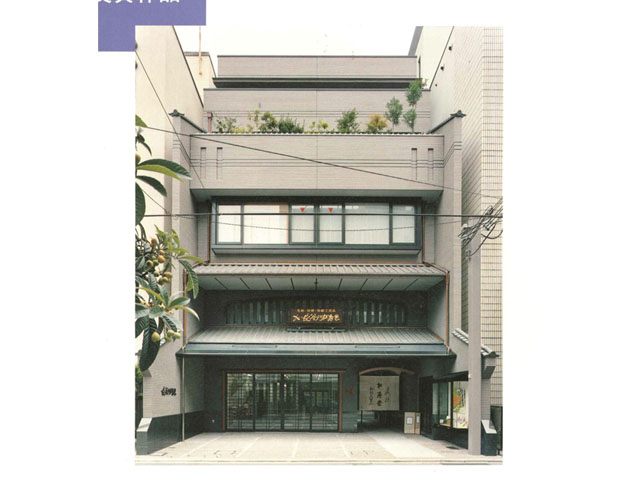 町家建築の再建で、新町家といえる建築です。 6階建ての建物ですが、1階の壁面を後退し、通り庇(ひさし)を設け、4階以上を通りから見えないように後退するなど「通り」に気を使ったデザインは、市街地建築物の推奨事例となるものです。更に、正面デザインは、元の町家の愛着により、近代的素材を用いながらも町家による街並み景観を再現し、町通りの景観形成のガイドラインの役割を果たしそうです。
