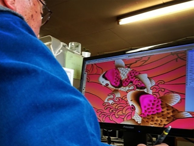 色別に処理されたデータを用いて、描画機で版に柄を描画します。 -