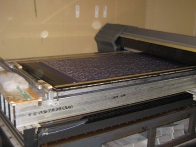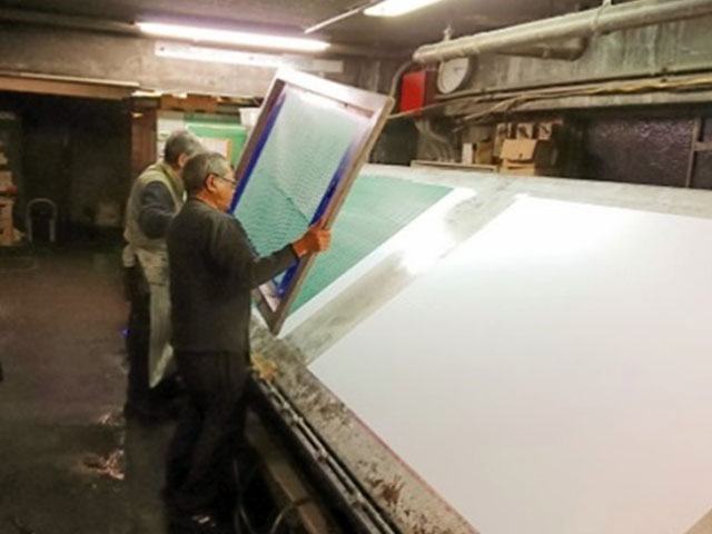 印刷工程は、版を依頼される染色工房各社様が行われますが、自社商品用には社内でもプリント加工を行っています。