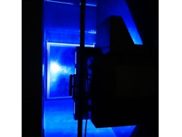 描画後、水銀灯(紫外線)を照射して、版に柄を焼き付け(露光)させます。 -