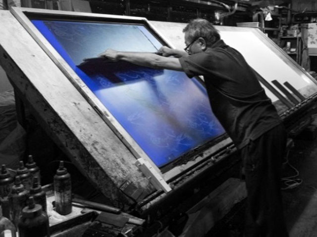 シルクスクリーンは、Tシャツのような単色刷りのデザインから、20色以上の京友禅用の着物まで、幅広くプリント加工に使用される伝統的な印刷手法です。