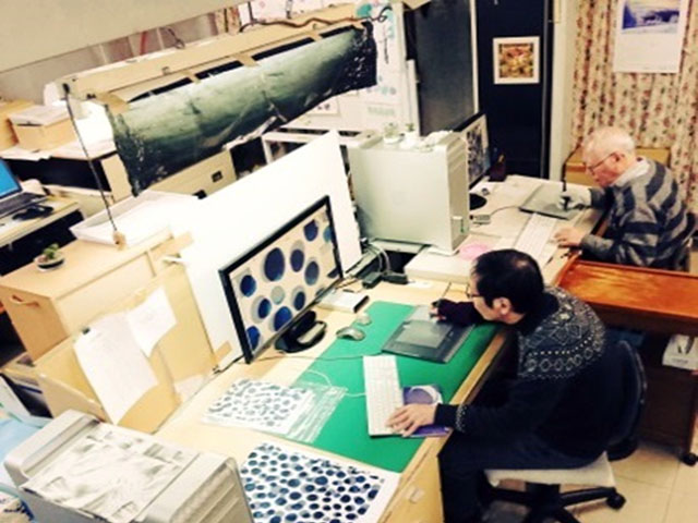 当社は、昭和10年に現在の場所で、繊維生地のプリント加工に必要な原版の製造で創業しました。そして現在も,地元京都の染色工房各社様向けに、シルクスクリーンプリントの型(版)の製版を行っています。また近年は新規事業として、自社商品の開発にも取り組んでおり、アニメやマンガのキャラクターグッズなども、製造販売しています。