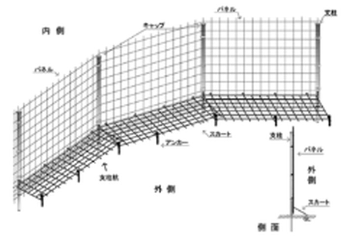 「イノシッシ」のスカートはもぐり防止、飛び込み防止に効果的です。施工はいたって簡単、ローコストで設置できます。パネルは柔軟性があり、傾斜地や急カーブの場所でも設置が可能で、扉も自由に設置できます。また動物が柵に衝突しても、適度な柔軟性により衝撃を緩和し動物を保護します。姉妹品として、上部電気柵仕様の「ビリビリイノシッシ」もございます。